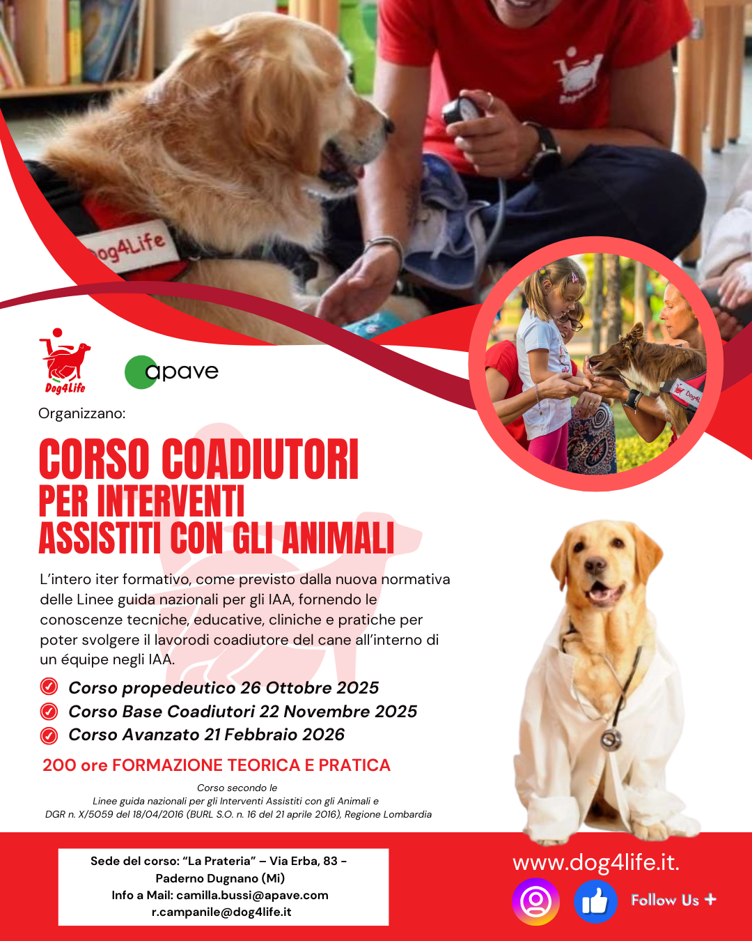 È OBBLIGATORIA LA PARTECIPAZIONE CON UN CANE DI PROPRIETÀ per il corso base coadiutori